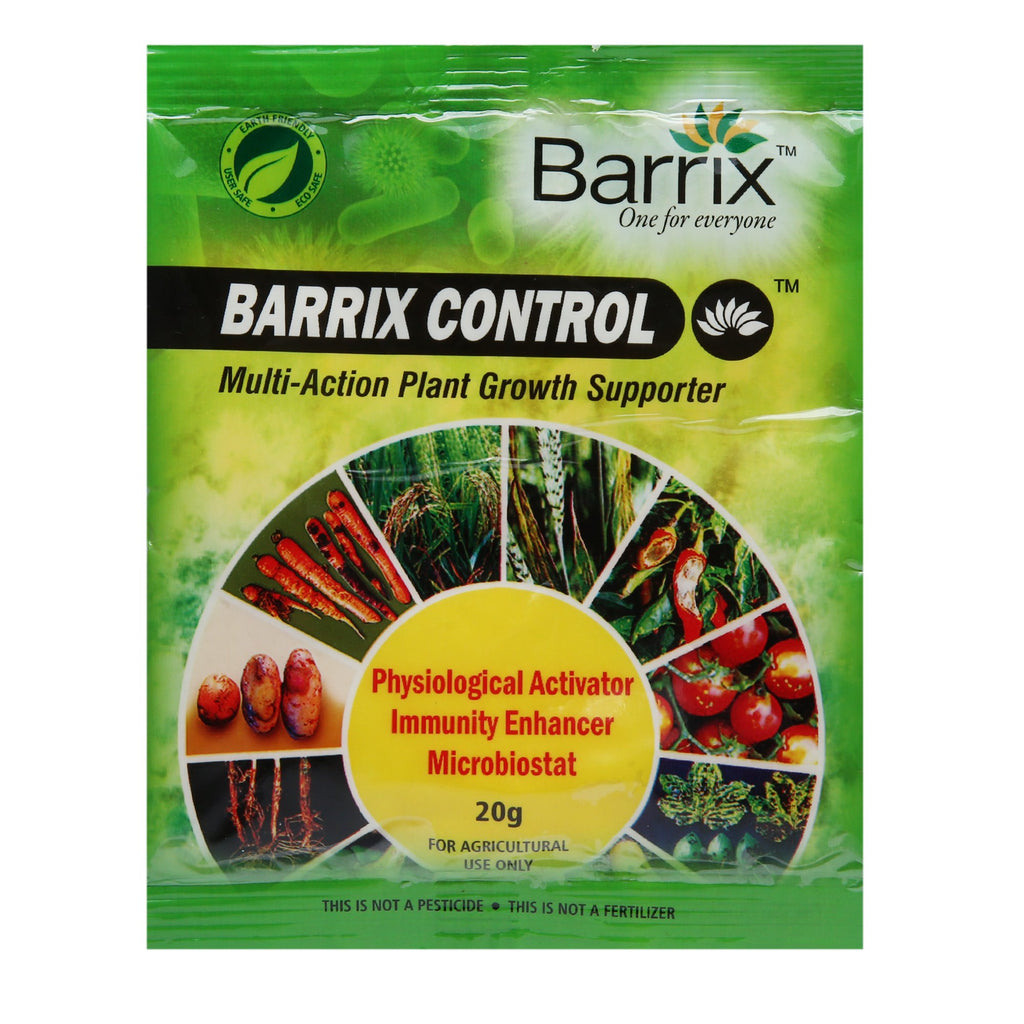 बैरिक्स कंट्रोल सामग्री का एक नया संयोजन है जो एक मल्टी-एक्शन प्लांट ग्रोथ प्रमोटर और सपोर्टर के रूप में काम करता है। यह इस प्रकार कार्य करता है: शारीरिक उत्प्रेरक, प्रतिरक्षा बढ़ाने वाला, और माइक्रोबायोस्टैट।