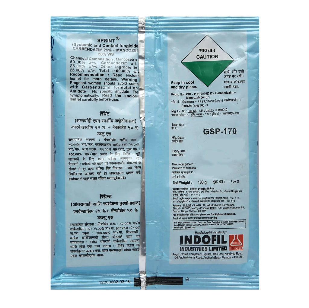 - स्प्रिंट संपर्क और प्रणालीगत कवकनाशी का एक संयोजन है, जिसमें उपचारात्मक और निवारक दोनों गतिविधि होती है।