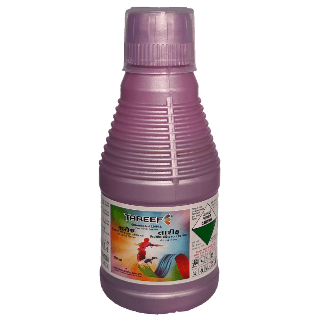 जिबरेलिक एसिड 0.001% एल की आवश्यक मात्रा को 1 लीटर पानी में 1 मिली की दर से मिलाएं और स्प्रे घोल तैयार करने के लिए 180-200 लीटर पानी प्रति एकड़ में घोलें।