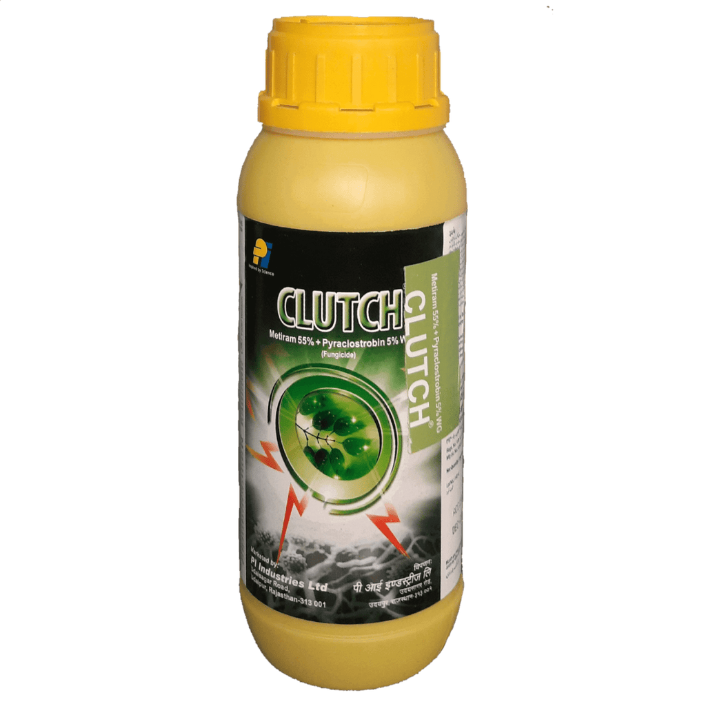 CLUTCH is a very effective fungicide with active ingredients Pyraclostrobin & Metiram which is used to control Early blight disease in Tomato, Late blight disease in Potato, and Downy mildew disease in Grapes.
