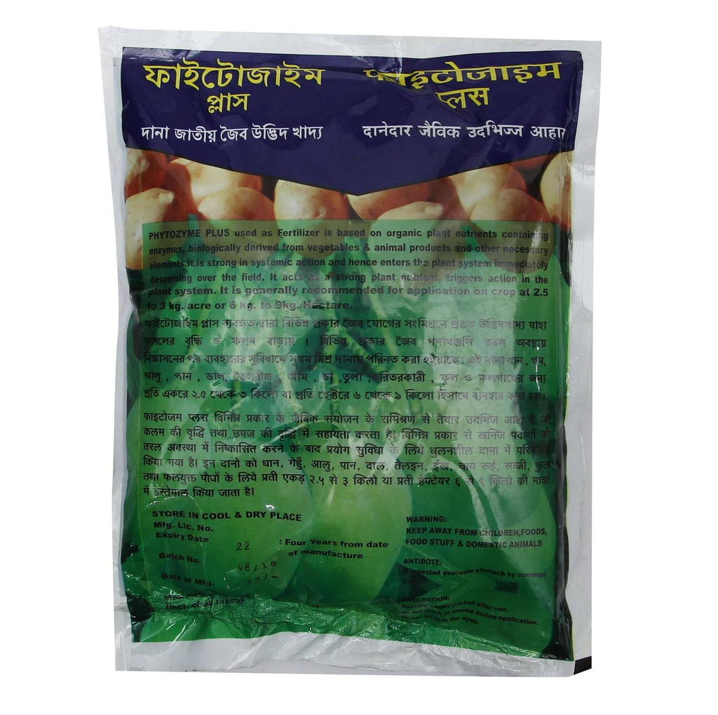 - Phytozyme Plus used as fertiliser is based on organic plant nutrients containing enzymes, biologically derived from vegetables & animal products and other necessary elements.